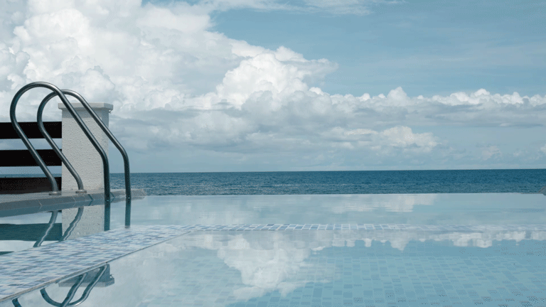Our pool’s seamless edge creates the illusion of merging with the ocean, offering uninterrupted views that stretch to the horizon.